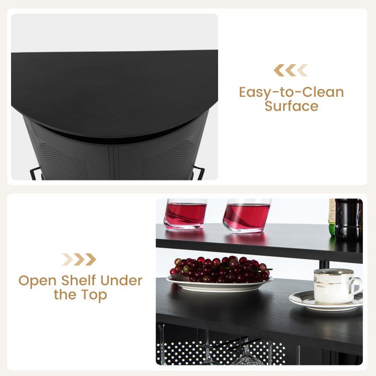 1.4-Tier Storage Space: This 4-tier bar table will be an ideal place to serve drinks. 1 spacious curved top, 1 open shelf and 2-tier storage shelves offer ample storage space for cocktail shakers, wines or ice buckets. Besides, 3 built-in stemware holders can accommodate about 9-12 glasses.