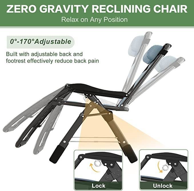 Get summer ready with this Fully Assembled Padded Folding Zero Gravity Patio Recliner w/ Cup Holder. This outdoor recliner has an adjustable design that can be adjusted from 90º to 170º effortlessly. This practical feature helps you select the optimal angle that brings you to a comfortable, relaxing position. Simply push the clip to unlock the position, and pull the clip back to secure it at your desired position. With cutton pad -- The soft cushion adds extra comfort, suit for cold days or air condition room; Without padding -- Suitable for summer time. You can remove the soft cushion from outdoor patio reclining chair to promote better airflow during hot summer days. This folding lawn chair can be fold and unfold in seconds. The camping lounge chair is easy transportation and storage, you can easy to bring it by car. Perfect for indoor and outdoor, suitable for patio, lawn, garden, yard, balcony, poolside, beach and office.